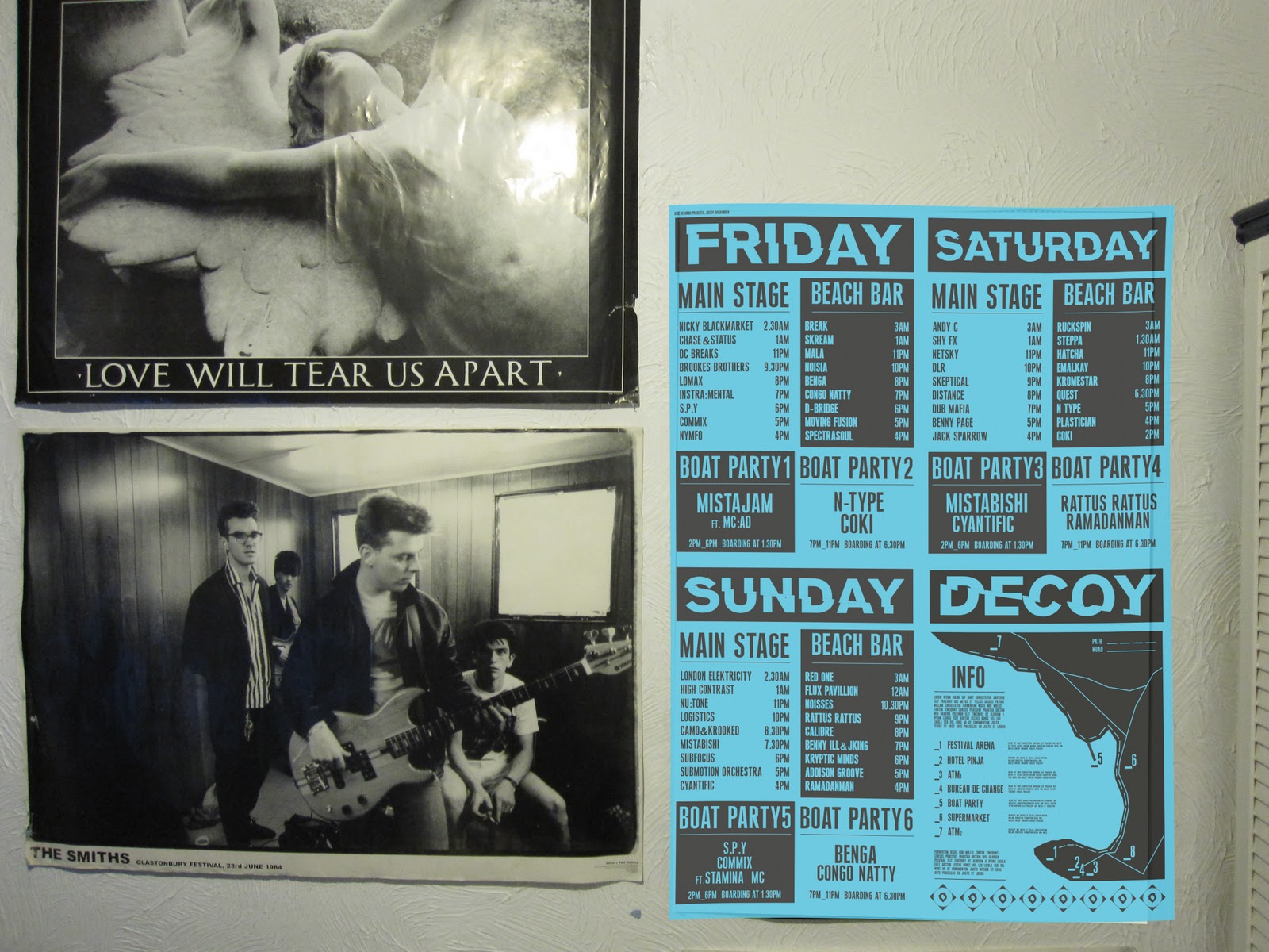 The intended context for the product, bedroom wall, after being bought from the festival as merchandise / memorabilia.
